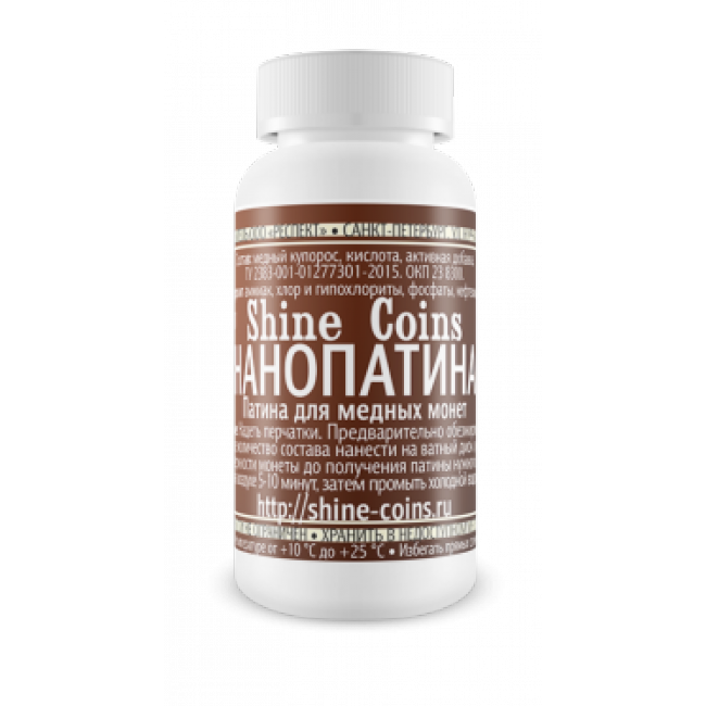 Предварительно обезжирить изделие (после обезжиривания промыть изделие, высушить). Небольшое количество состава нанести на ватный тампон и аккуратно, на нажимая, растереть по поверхности (монеты, изделия) до получения патины нужного цвета. Готовое изделие (монету) просушить на воздухе 5-10 минут, затем промыть холодной водой. Высушить чистым тампоном, если поверхность имеет более тёмные пятна, при необходимости удалить избыток состава тампоном. окончательно просушить изделие на воздухе.
